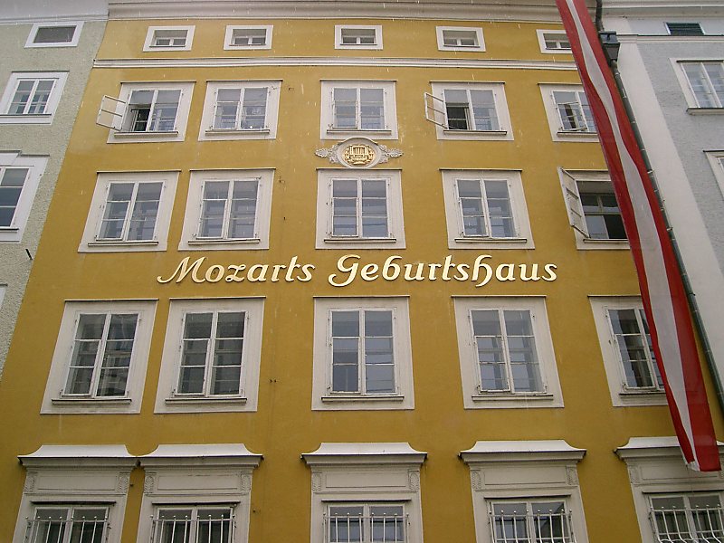 1756년 1월 27일에 ‘음악의 신동(神童)’ 볼프강 아마데우스 모차르트가 태어난 집으로, 잘츠부르크에서 가장 번화한 게트라이데 거리(Getreidegasse) 9번지에 있다. 모차르트는 12세기 무렵 지어진 이 건물 3층에서 태어나 17세이던 1773년까지 살았다. 1917년 국제모차르테움(Mozarteum)협회에서 인수한 후 모차르트 기념관으로 사용 중이며, 전시품들을 통해 당시 중산층의 전형적인 생활모습을 엿볼 수 있다.